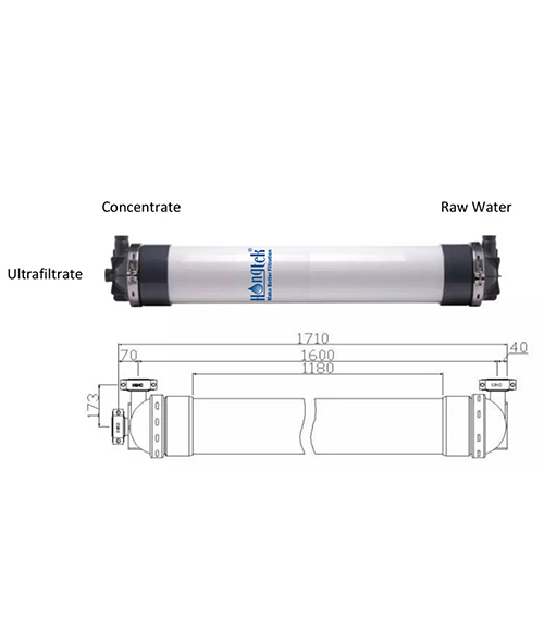 UFP250 Series 10" PVC Hollow Fiber UF Membrane Filter Module is made of modified PVC hollow fiber membrane and used to further improve the anti-pollution performance and anti-attenuation performance of the membrane while maintaining high flux and high hydrophilicity, and to update the ultrafiltration experience for customers. The internal pressure type structure of 10" PVC UF membrane filter can effectively remove suspended solids, colloids and microorganisms in water, and is widely used in the fields of groundwater and surface water purification, sewage treatment, water reuse, seawater desalination pretreatment etc.. PVC hollow fiber ultrafiltration membrane has high filtration precision, good production water quality, optimized fluid distribution and economical operation.
